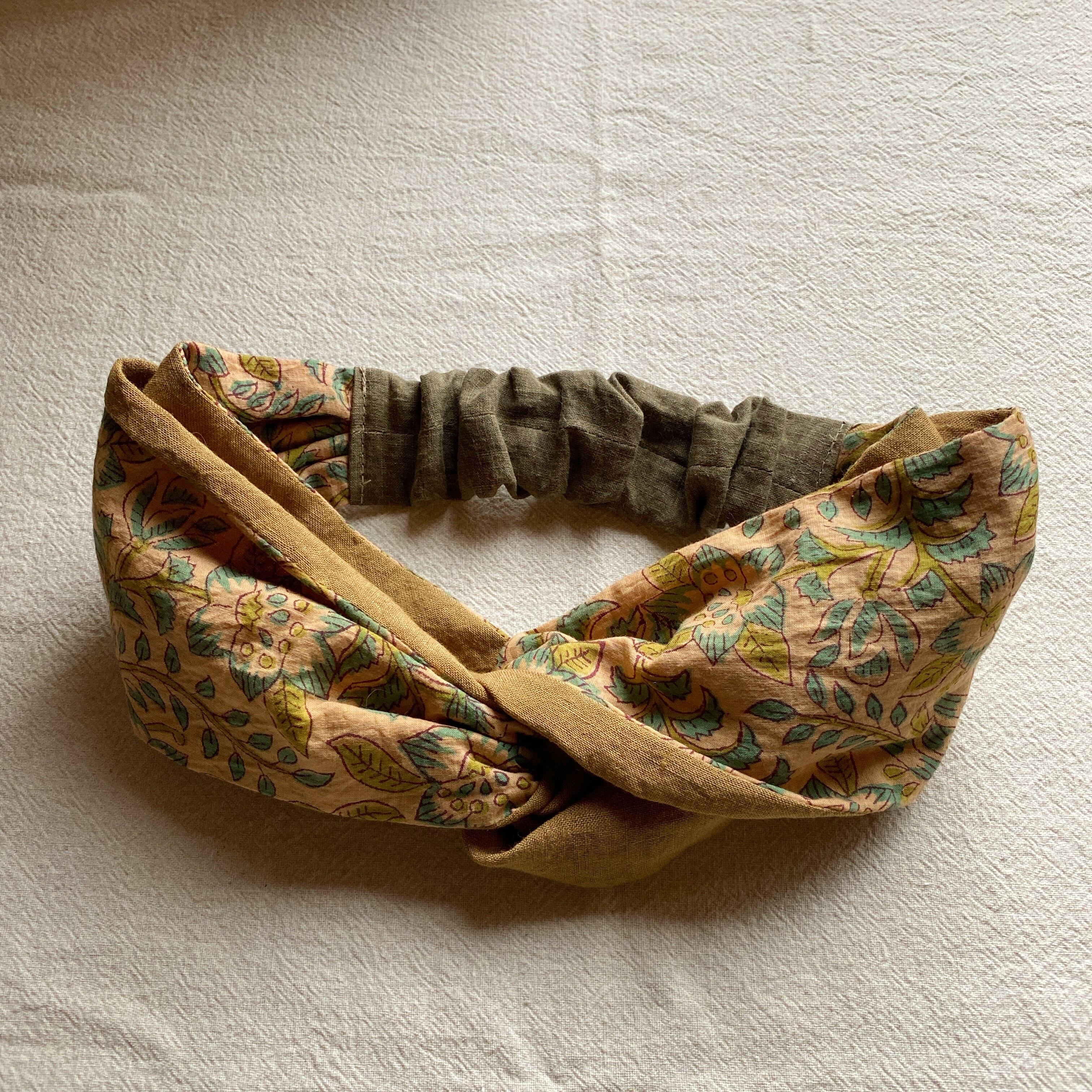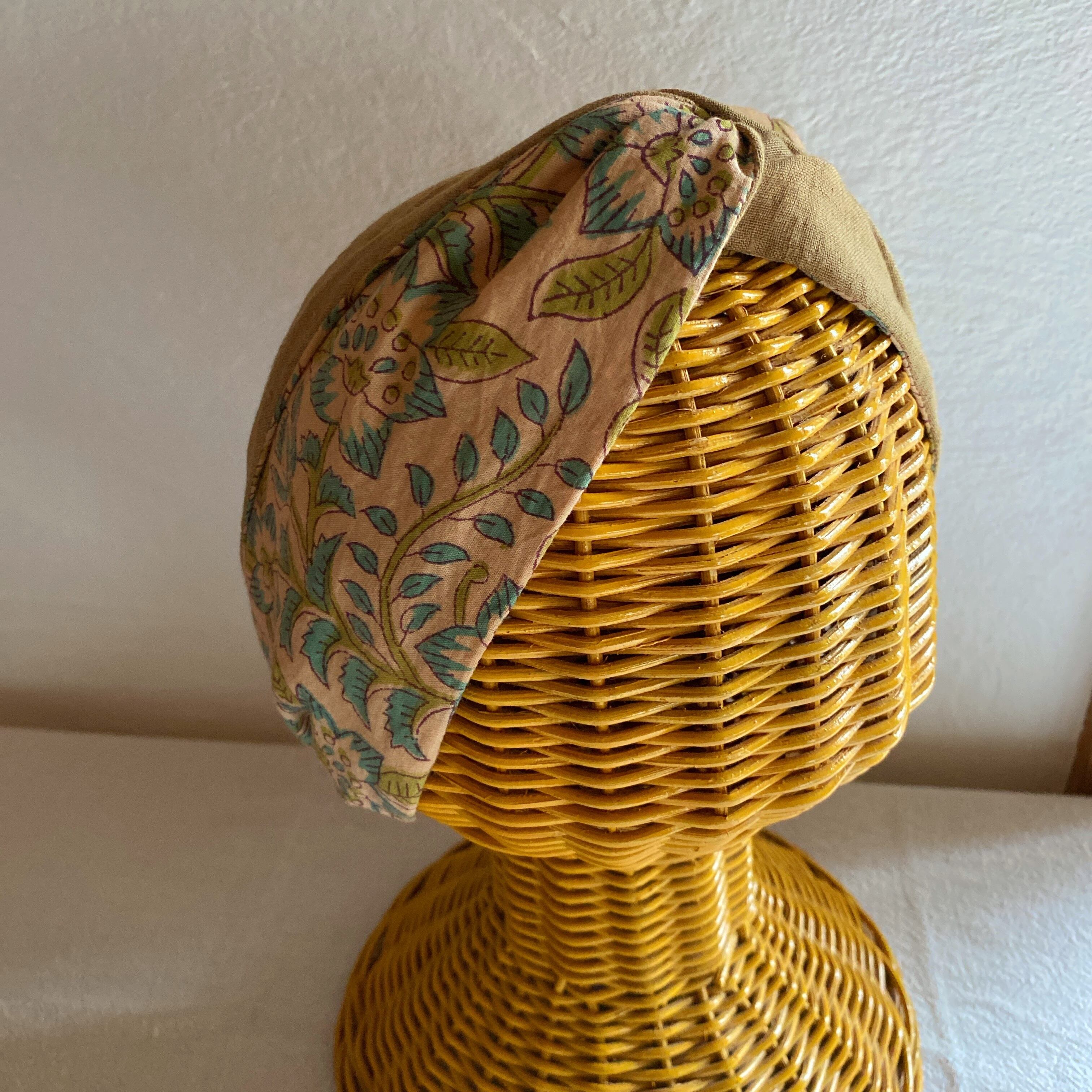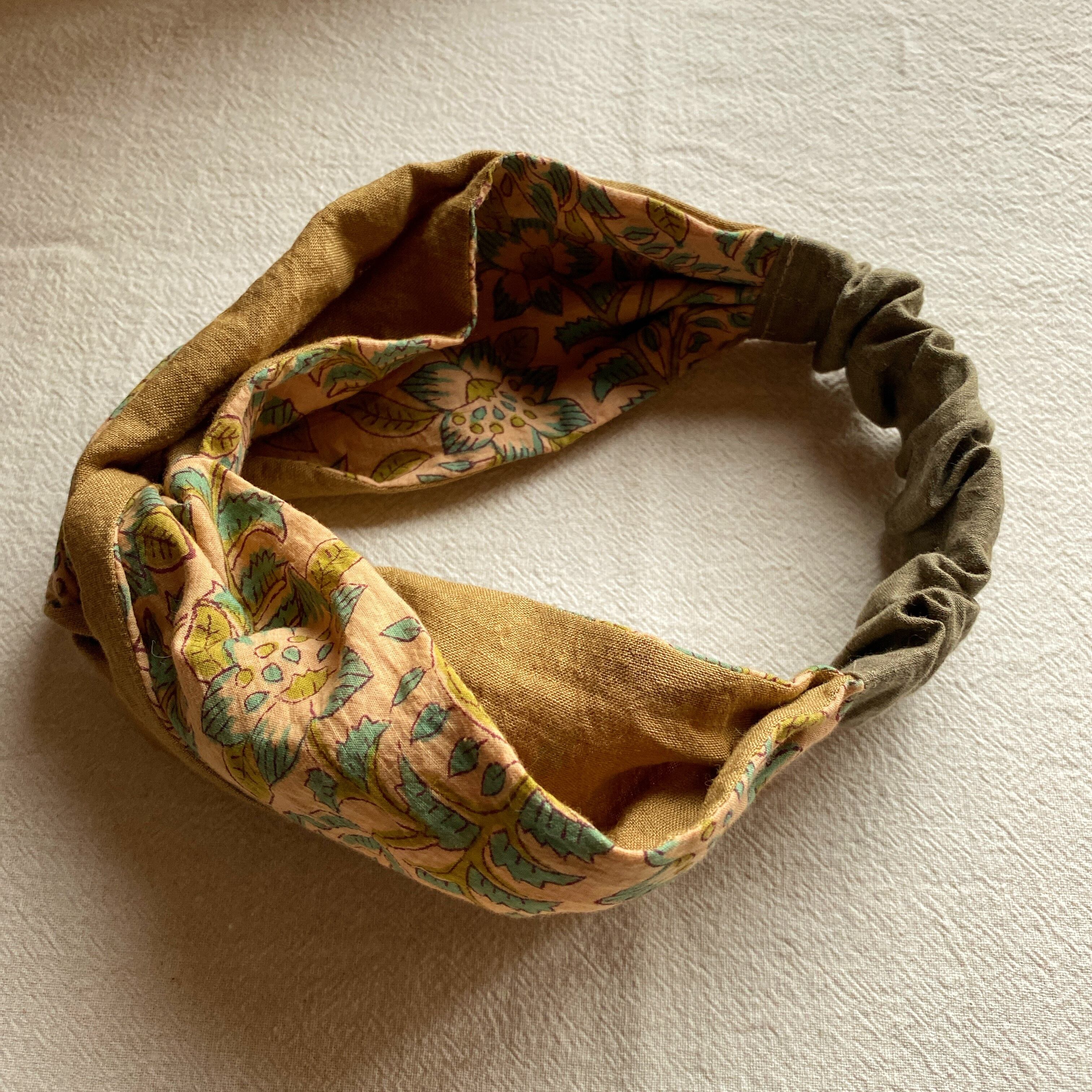 草木染めクロスターバン✴︎リネン×ブロックプリント