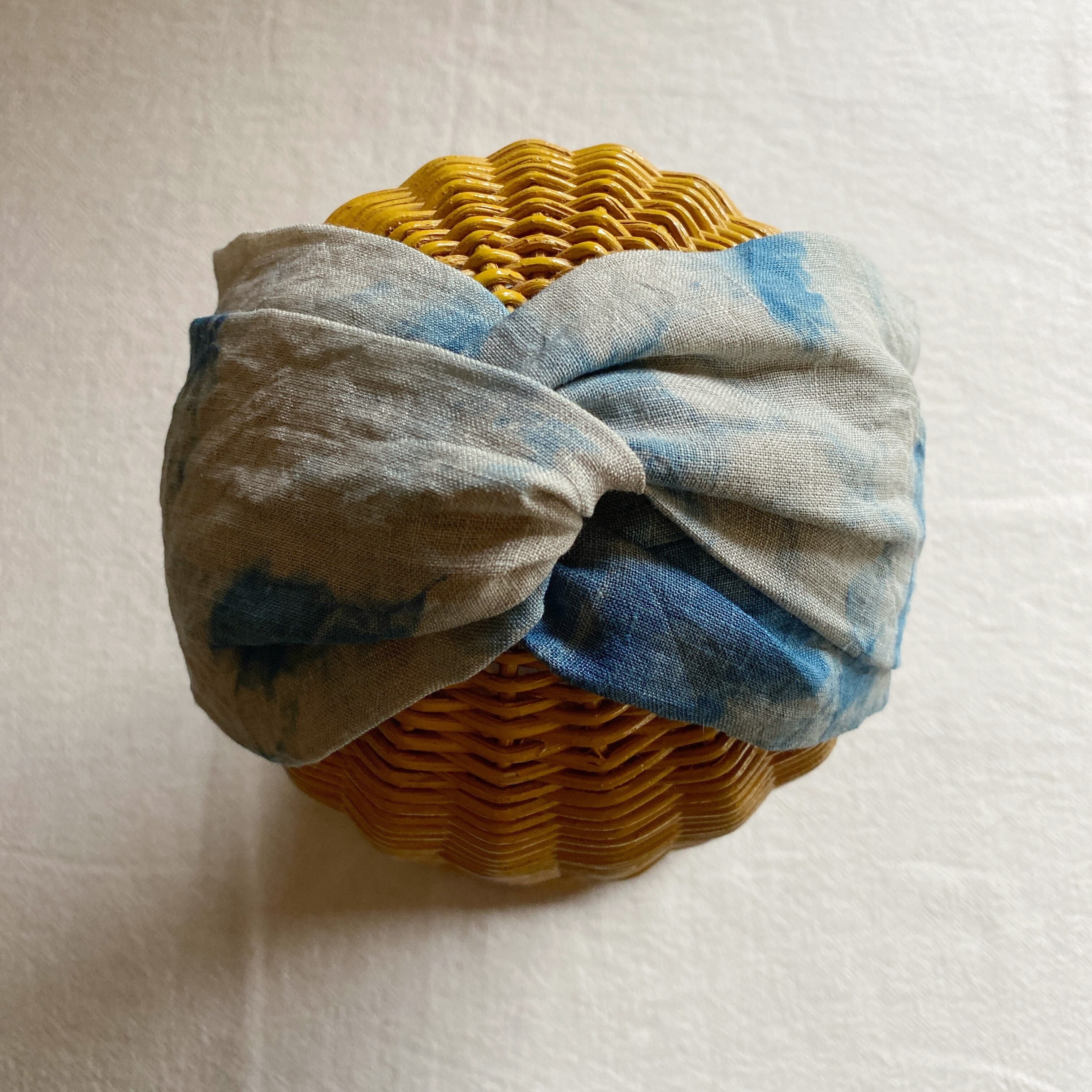 正藍染めの美しい色合いと、リネン素材のナチュラルな魅力が詰まったクロスターバン、正藍染めlinen cross turban✴︎まだらです。