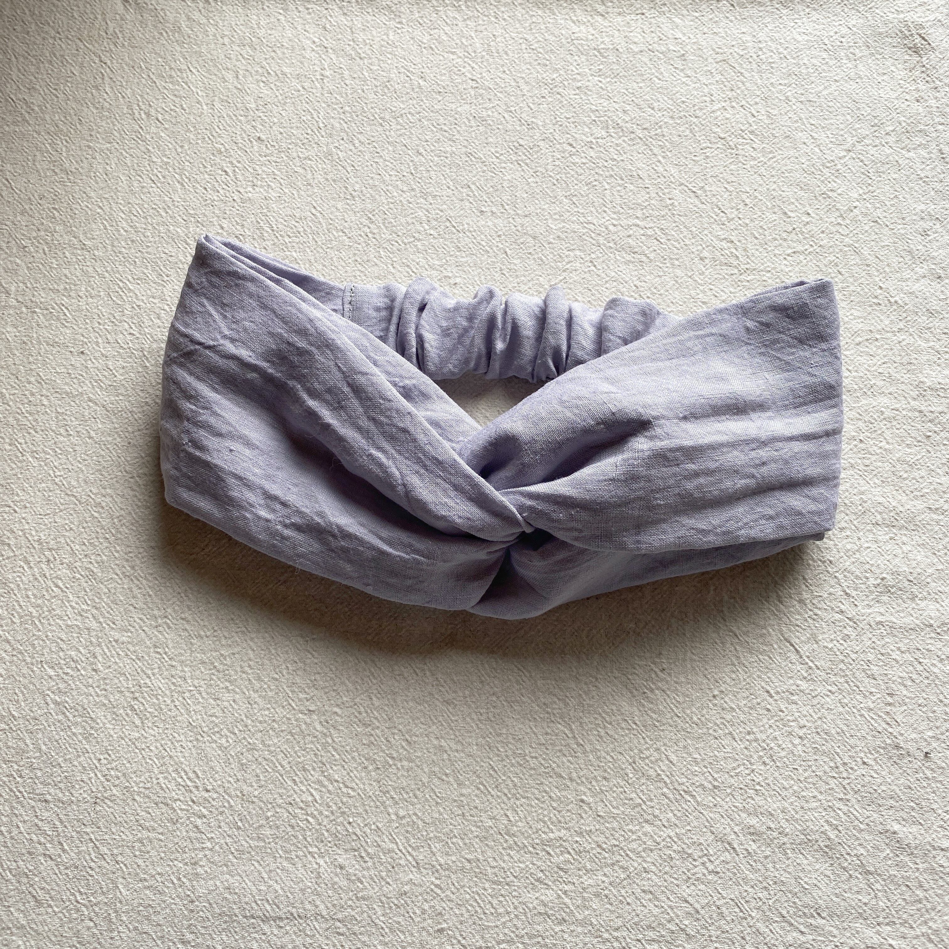 リネンクロスターバン✴︎ラベンダーです。柔らかなラベンダー色と独自のテクスチャーが魅力で、シンプルながらもスタイリッシュな印象を与えます。