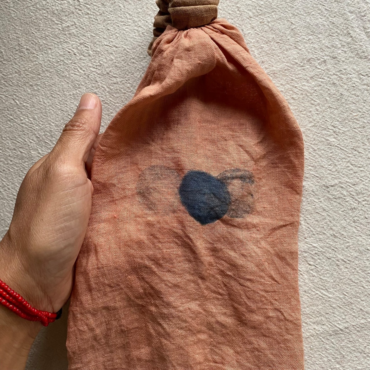 茜染めリネン素材のしなやかさと優れた通気性が特長で、肌に優しく、一年を通じて快適にご使用いただけます。日常的なアイテムとして活躍すること間違いありません。