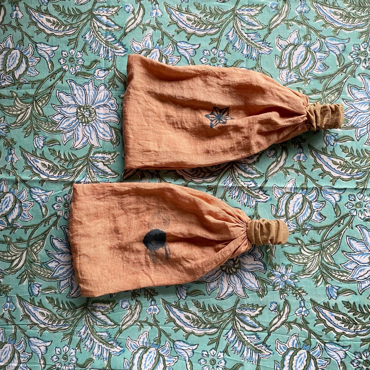 このターバンは全て手作業で丁寧に仕上げられており、茜染めの美しさを最大限に活かしたデザインが特徴です。リネン特有の風合いと、時間とともに変化する美しい色合いをぜひご体験ください。