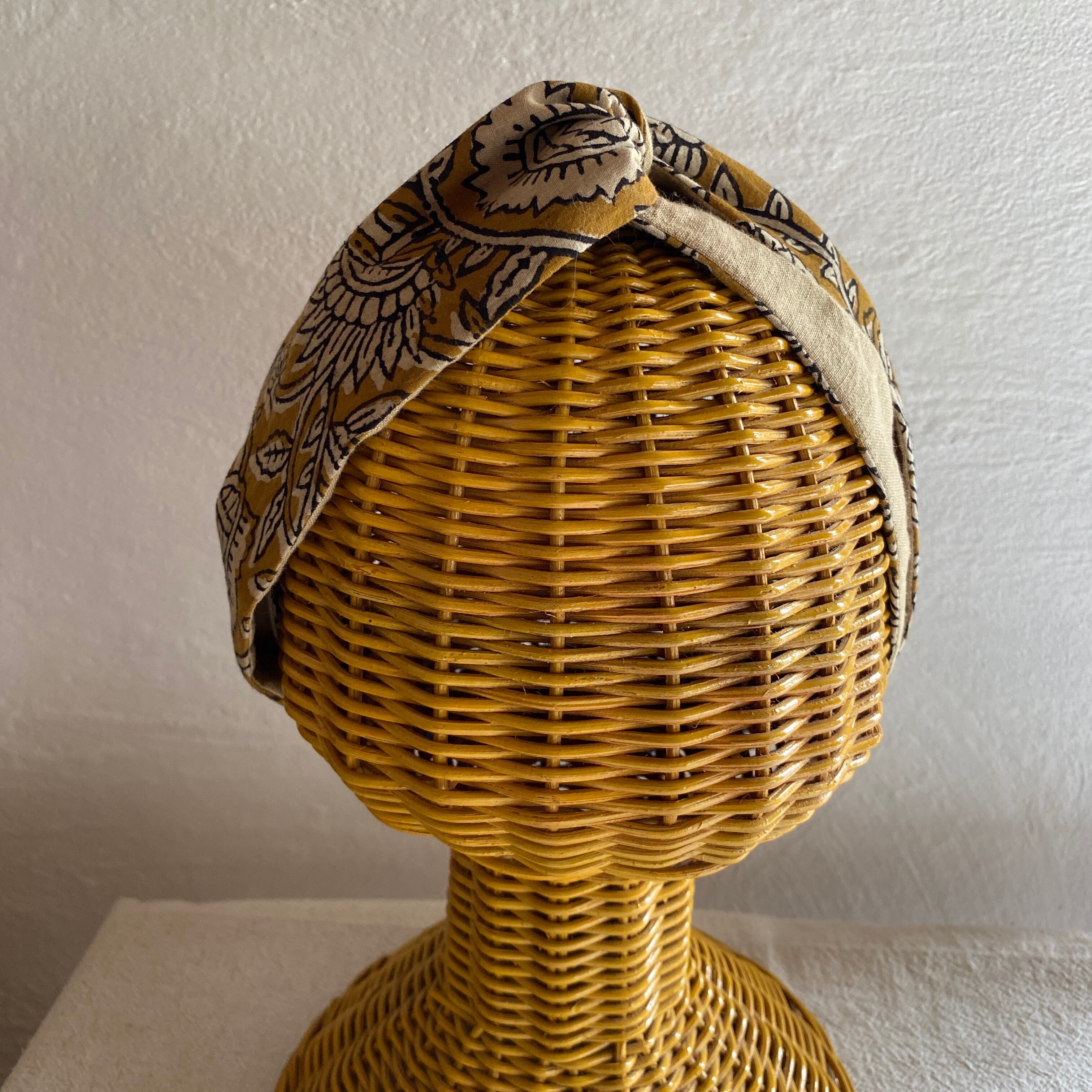 全て手作業で丁寧に仕上げられたこのターバンは、インドのブロックプリントが持つ独特の美しさを引き立てており、リネン特有の柔らかい風合いも楽しむことができます。デザインの背景や素材の特色を感じながら、日常のスタイルに取り入れていただければ嬉しいです。