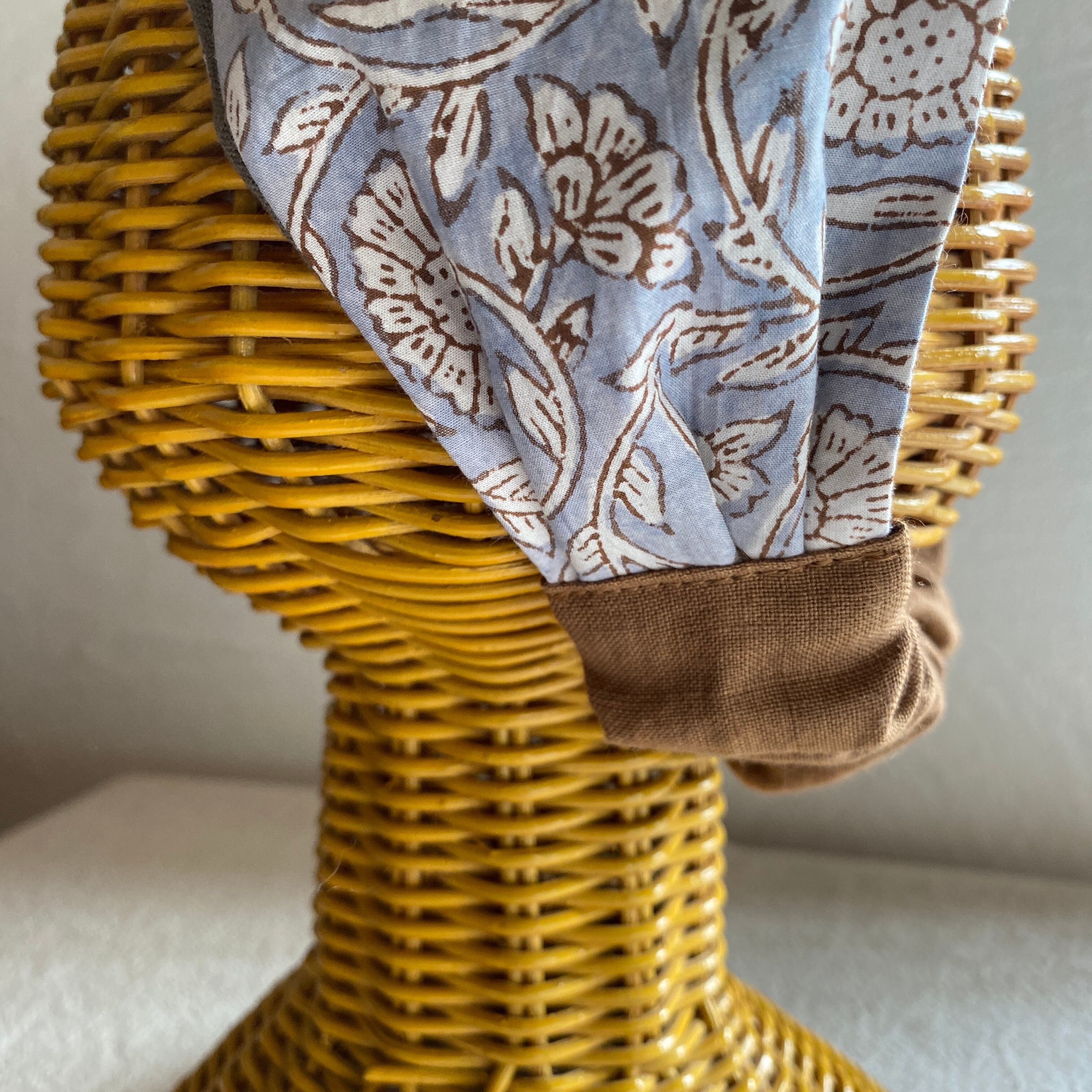 全て手作業で丁寧に仕上げられたこのターバンは、インドのブロックプリントが持つ独特の美しさを引き立てており、リネン特有の柔らかい風合いも楽しむことができます。デザインの背景や素材の特色を感じながら、日常のスタイルに取り入れていただければ嬉しいです。